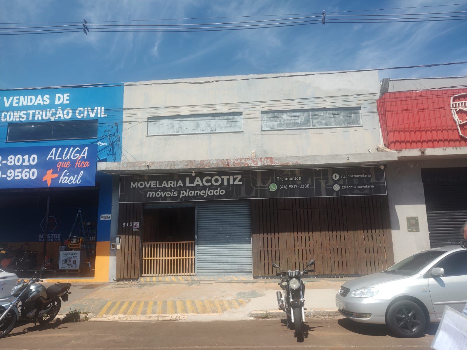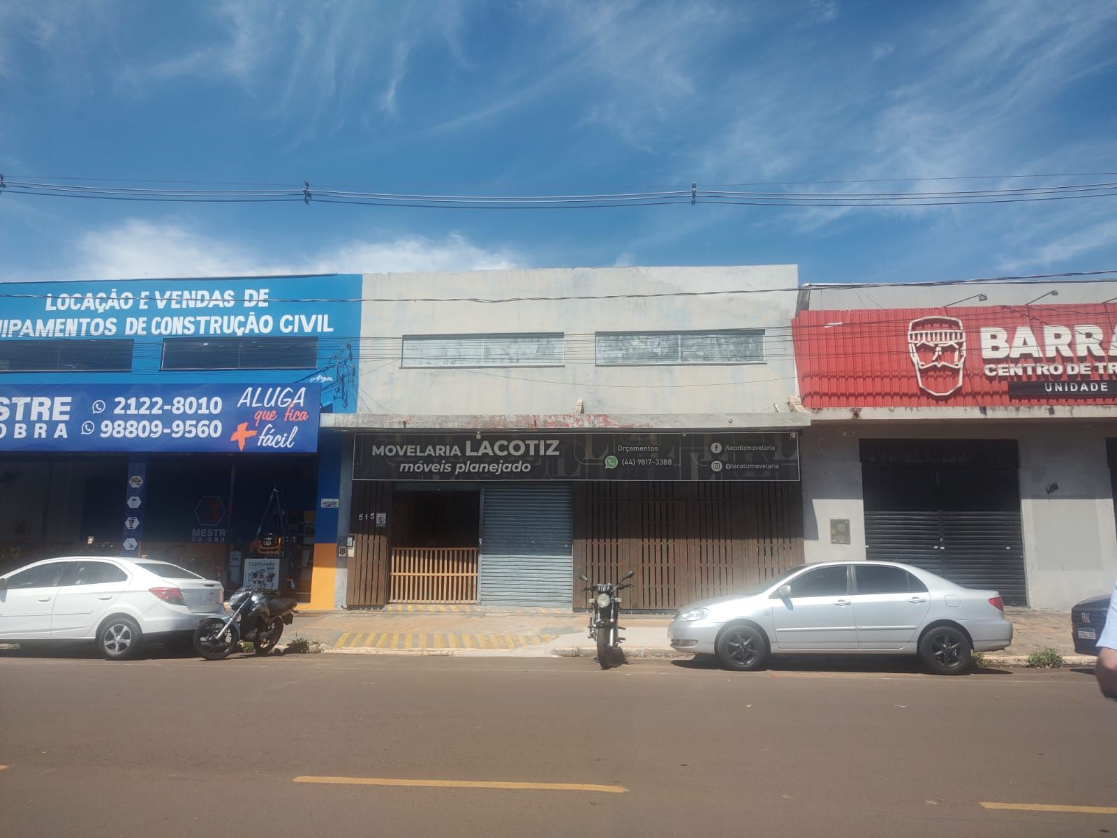 Barracão tem duas frentes a principal para a Av. Maringá a outra pela Rua Espanha.